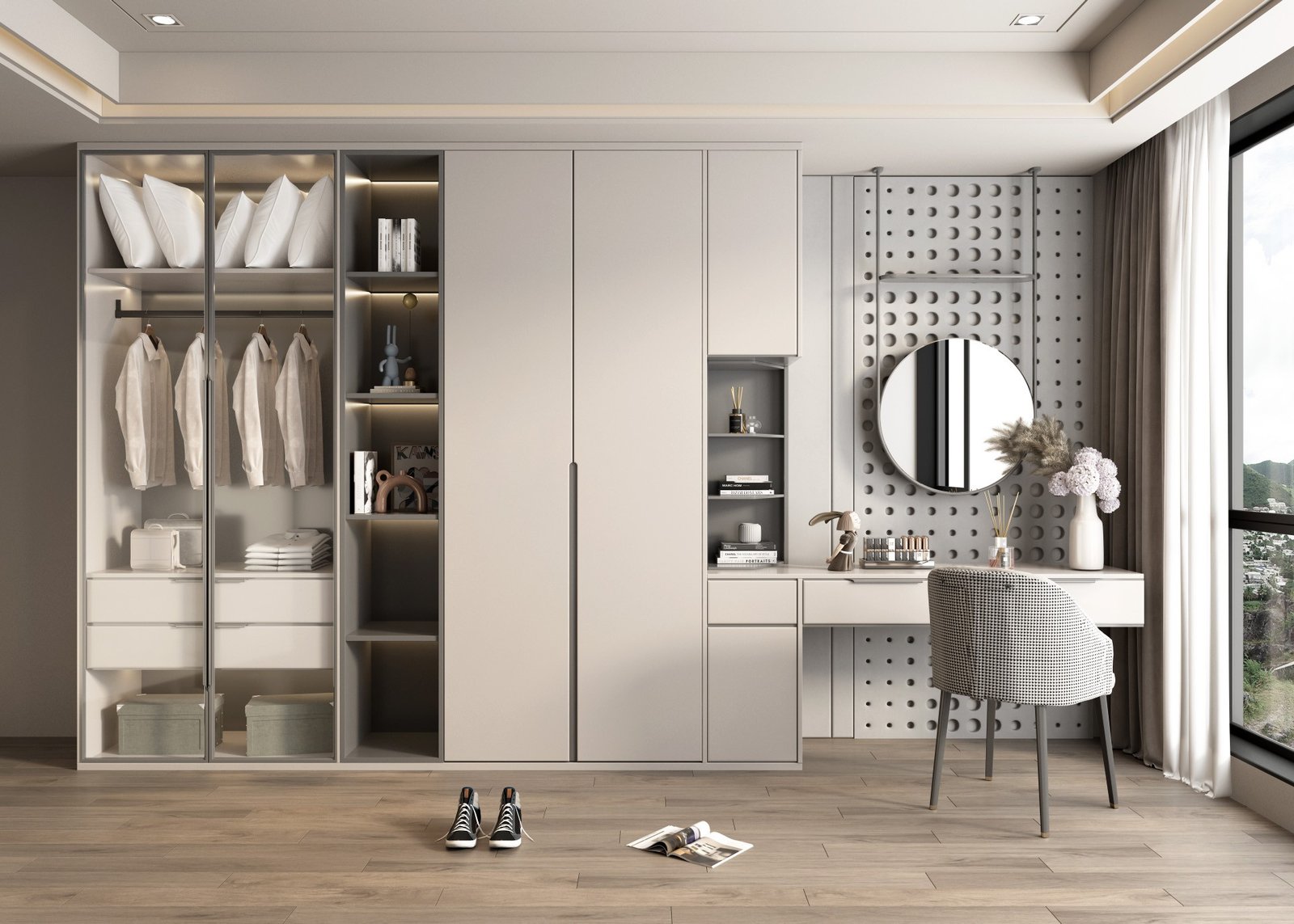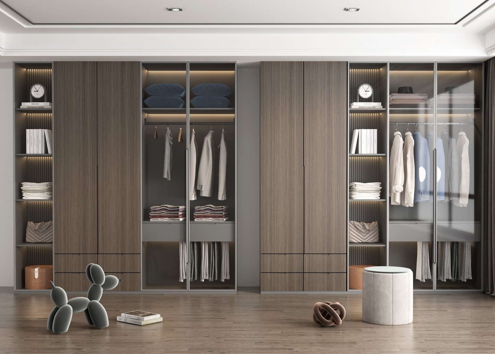 Choose from sophisticated matte lacquer finishes or timeless wood textures to match any interior style. Enhance your wardrobe with optional motion-sensor LED lighting, providing effortless visibility during nighttime use.